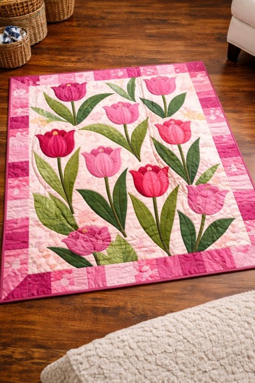 Tulip Garden Quilt Pattern designs capture the fresh beauty of spring in fabric form, making them a favorite among quilters