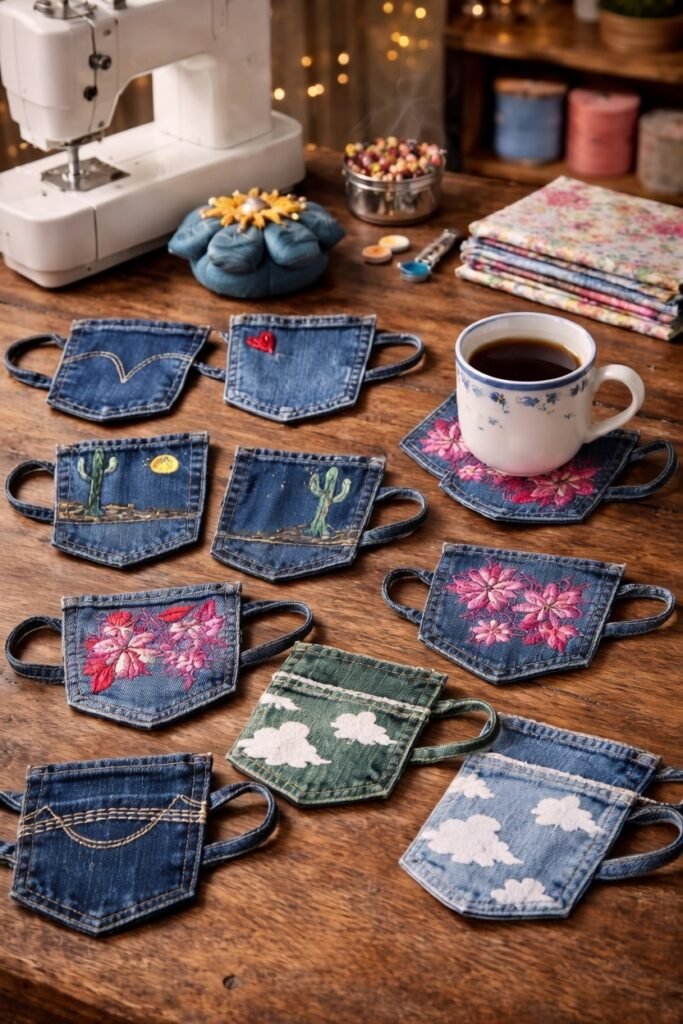 Coasters from Old Jeans and Pockets Pattern is a creative and sustainable way to transform worn-out denim into something both