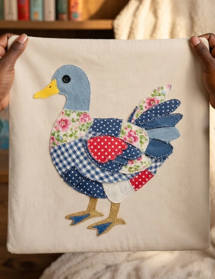 The Patchwork Duck with Denim Pattern is a delightful and creative sewing project that transforms simple fabric scraps into an