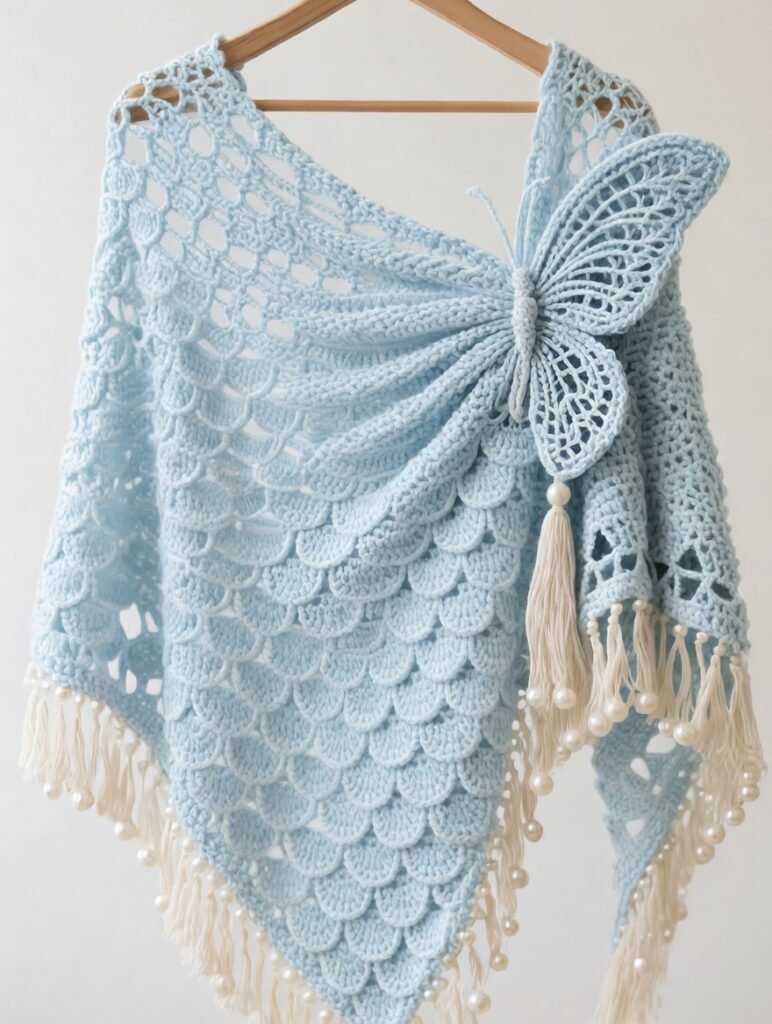 Beautiful Crochet Butterfly Shawl – Pattern is a breathtaking project that blends elegance, creativity, and delicate craftsmanship into a wearable