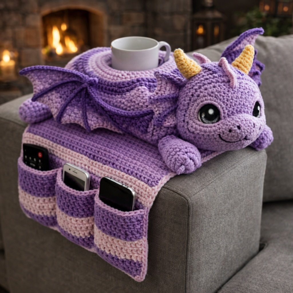 Crochet Tutorial for a Dragon-Shaped Armrest Organizer is a creative and highly functional project that transforms simple yarn into a