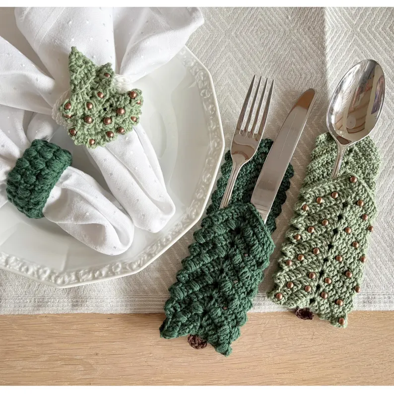 Once your Christmas Tree Cutlery Holder & Napkin Ring Crochet Pattern set is complete, you can begin styling your holiday table with creativity and elegance. These crochet accessories pair beautifully with both minimalist and traditional Christmas décor, making them versatile for many types of celebrations.