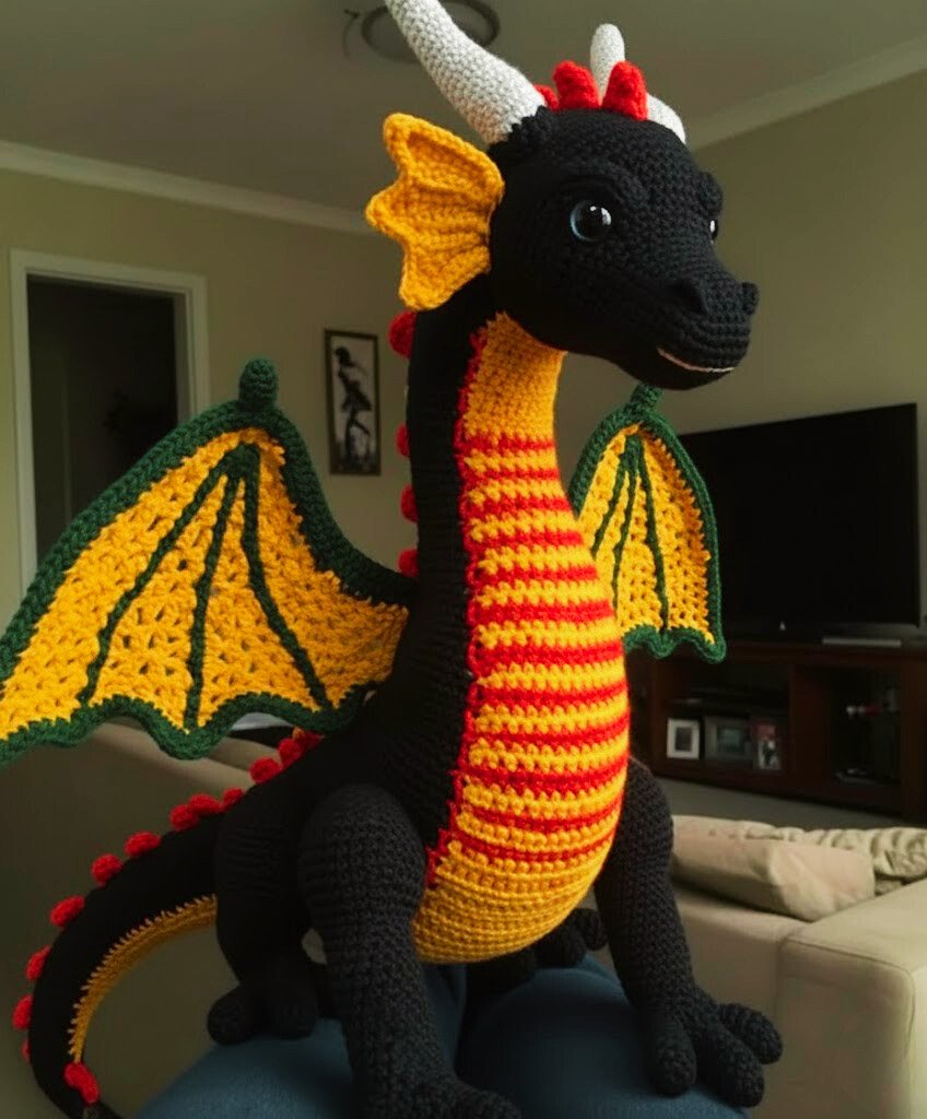 Wings are a distinctive feature of the Crochet Dragon Pattern. They may be simple and rounded for a cute appearance or detailed with openwork stitches for a more dramatic effect. Wing construction often involves working in rows rather than rounds, adding variety to the crocheting process.