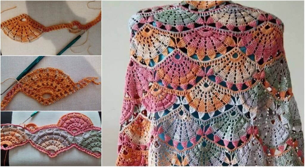 Stitch selection plays a major role in the final look. Openwork stitches, shells, fans, and simple lace motifs are frequently used in a Spring Colorful Crochet Shawl Pattern to achieve elegance without heaviness.
