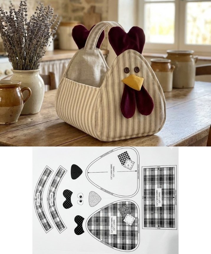 “Country Hen” Shopping Bag – Short Handle and Stable Base is a charming and practical handmade project that combines rustic