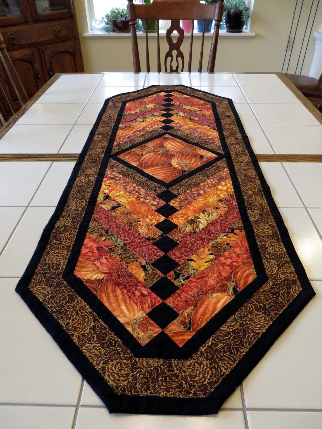 The size depends on your table. Most table runners measure between 40 and 60 inches long and 12 to 18 inches wide, but you can adjust it as needed.